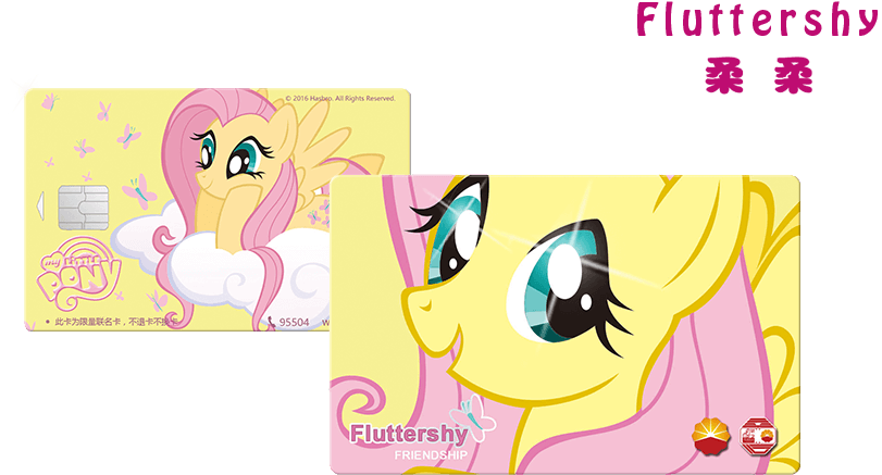 本卡是由中國(guó)石油天然氣股份有限公司聯(lián)合中意人壽保險(xiǎn)有限公司推出的第一套小馬寶莉系列特種形象加油卡——柔柔加油卡,本卡全球限量發(fā)行。本卡具備中國(guó)石油普通加油卡的全部功能,在升級(jí)為記名卡后,該持卡人將有機(jī)會(huì)享受免費(fèi)贈(zèng)送的高額保險(xiǎn)服務(wù),參與當(dāng)?shù)刂袊?guó)石油加油站記名卡優(yōu)惠活動(dòng)以及更多的優(yōu)惠活動(dòng)。